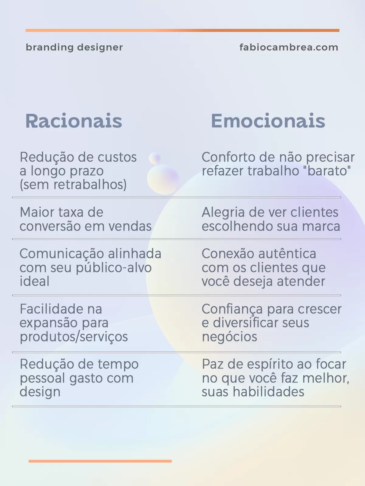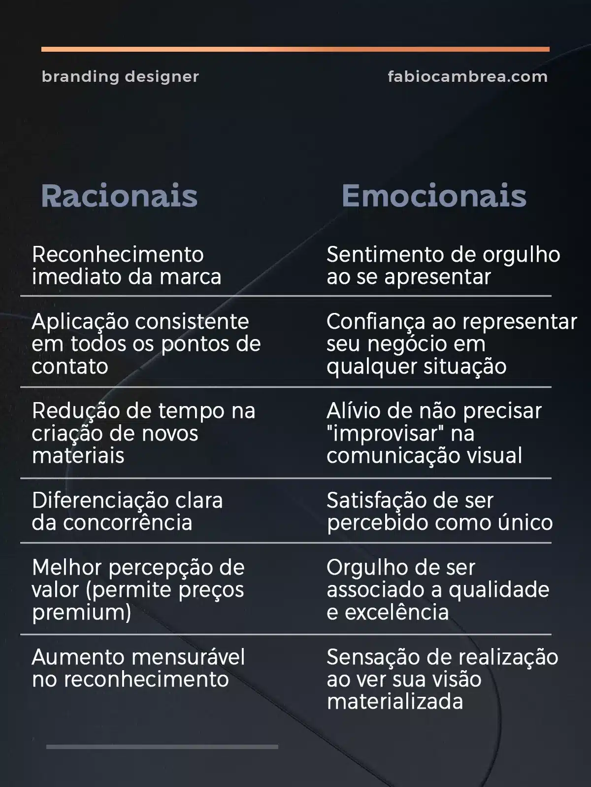 Muita gente não imagina quantos benefícios o branding traz — tanto racionais quanto emocionais.