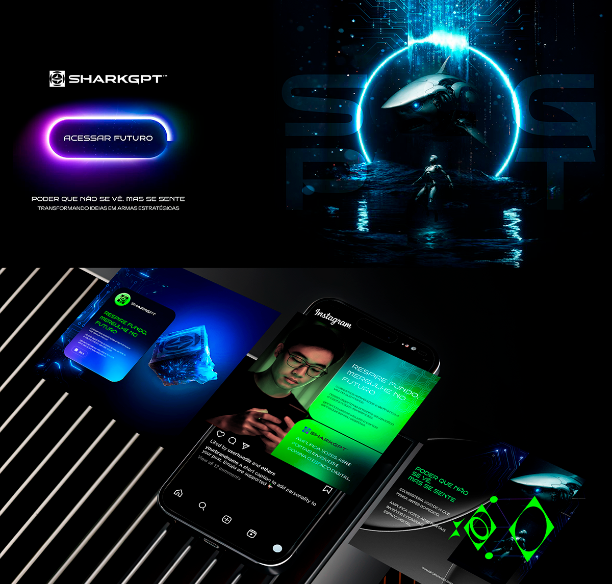 Este branding, criado para ser letalmente elegante e absolutamente exclusivo, só foi possível graças à visão audaciosa do nosso parceiro Jeferson, que, diretamente dos EUA, confiou em nosso processo stealth-luxo desde o primeiro pulso de sonar. Juntos, unimos neuro-estratégia, design abissal e uma experiência sensorial que coloca qualquer marca dois passos à frente.